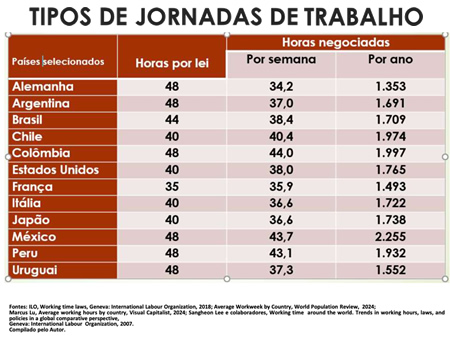 Na América Latina, a maioria dos países adota uma jornada legal de 48 horas semanais, embora existam casos com limites menores, como 44, 40 ou até 35 horas. No entanto, prevalecem as cargas horárias mais altas. Isso ocorre porque, com uma jornada legal mais extensa, é possível negociar reduções por meio de acordos. E, caso haja necessidade de aumento temporário das horas trabalhadas, basta retornar ao patamar originalmente previsto em lei.