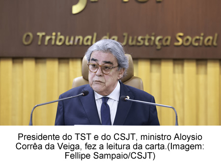 A leitura da carta foi feita pelo presidente do TST, ministro Aloysio Corrêa da Veiga, ao término do Seminário Internacional de Precedentes da Justiça do Trabalho. "A Justiça do Trabalho adentra, com grande intensidade, o Sistema Brasileiro de Precedentes, o que reflete uma mudança visceral na forma como julgamos", declarou. "Esse é o legado da comunidade jurídica para uma melhor apreciação dos conflitos trabalhistas".
