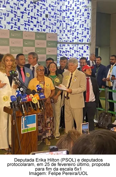 - Congresso analisa outras propostas de redução de jornada de trabalho. Além da PEC 8/2025, da deputada Erika Hilton (PSOL-SP), o Legislativo brasileiro analisa outros textos que defendem mudanças na legislação trabalhista que regula a jornada. São exemplos o PL (Projeto de Lei) 67 de 2025, de autoria da deputada Daiana Santos (PCdoB-RS), que aguarda parecer do relator na Comissão de Trabalho (Ctrab), o PL 3197 de 2025, do deputado Lindbergh Farias (PT-RJ), que está na Comissão de Indústria, Comércio e Serviços, ou ainda a PEC 148 de 2015, do senador Paulo Paim (PT-RS), parada na Comissão de Constituição, Justiça e Cidadania.