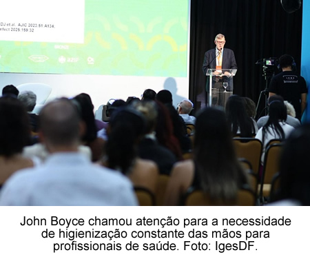 Em Congresso do IgesDF, infectologista norte-americano reforça importância de desinfecção do ambiente hospitalar. John Boyce chamou atenção para a necessidade de higienização constante das mãos para profissionais de saúde
